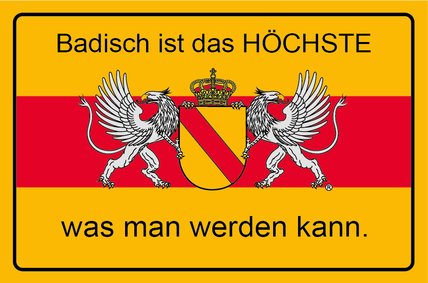 🟡 Design: Alu-Schild mit dem Spruch „Badisch ist das Höchste, was man werden kann“ und dem Wappen von Baden