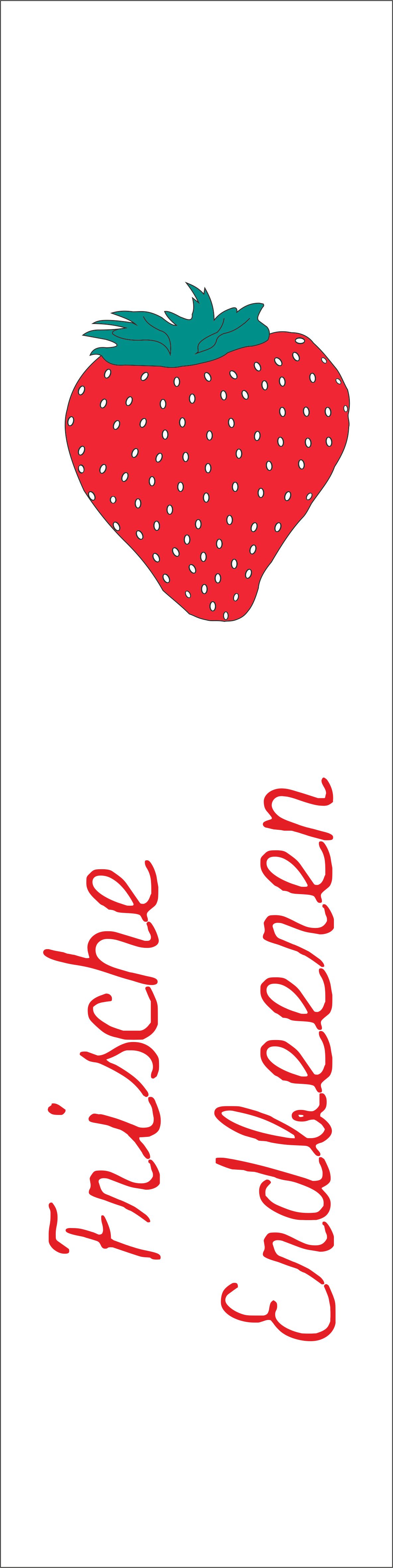 Auffällige Werbefahne mit Erdbeer-Motiv – ideal zur Kennzeichnung von Verkaufsständen, Hofläden oder Wochenmärkten während der Erdbeer-Saison. Die Fahne ist im Hochformat gestaltet und sorgt dank ihrer Größe für hohe Fernwirkung.