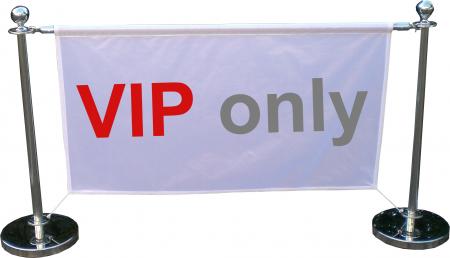 Die Barriere aus hochglanzpoliertem Edelstahl ist die ideale Lösung für elegante und sichere Abgrenzung bei Veranstaltungen, Messen und in Eingangsbereichen. Sie besteht aus zwei robusten Edelstahl‑Pfosten (jeweils 23 kg) sowie einer Querstange mit praktischen Karabinerverschlüssen, an der ein Stoffbanner von ca. 130 x 170 cm befestigt werden kann. Das System besticht durch seinen sicheren Stand, das edle Design und eine unkomplizierte Handhabung – ideal für den Einsatz bei repräsentativen Anlässen im Innen‑ und Außenbereich.