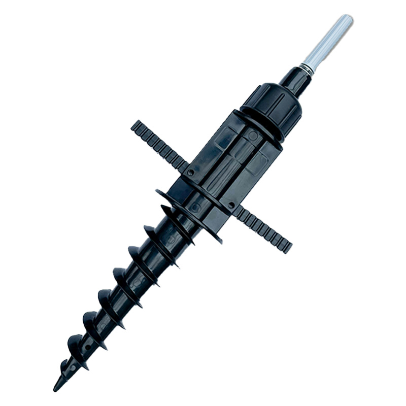 Der Erdanker mit Gewinde ist die ideale Lösung zur sicheren Befestigung von PromoFlags und Beachflags in weichen, steinlosen Böden. Durch das spitz zulaufende, robuste Gewinde lässt er sich einfach per Hand in den Boden eindrehen. Die ausklappbaren Griffe ermöglichen eine werkzeuglose Montage und sorgen für besonders sicheren Halt. Das Obergewinde hat eine Breite von 11 cm und eine Länge von ca. 25 cm, bei einer Gesamtlänge des Erdankers von 50 cm. Das Drehgelenk am Zapfen (16 mm Durchmesser) erlaubt eine 360°-Drehung der Fahne – ideal für den Einsatz bei Wind. Durch das geringe Gewicht von nur 0,5 kg ist der Erdanker besonders mobil und lässt sich bequem transportieren.