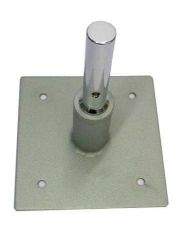 Stabiler Bodenhalter für Promoflags mit 90° Aufnahme. Die massive Metallplatte lässt sich durch 4 Bohrungen fest am Boden anschrauben und sorgt für sicheren Halt bei Wind und Wetter. Durch den drehbaren Aufnahmezapfen bleibt die Fahne immer frei beweglich.