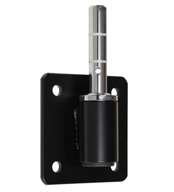 Robuste Wandhalterung für Promoflag in 45°- oder 180°-Ausführung. Die Metallplatte (10 x 10 cm) mit 4 Bohrungen im Abstand von 8 cm sorgt für sicheren Halt. Das drehbare Aufnahmeelement (Länge ca. 8,8 cm, Ø 0,7 cm) ermöglicht eine flexible Positionierung der Fahne.