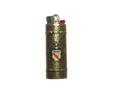 Elegant lighter with a solid brass case, featuring an enameled Baden coat of arms.